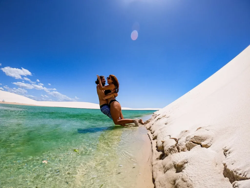 Santo Amaro é um dos acessos e o mais próximo para o Parque Nacional dos Lençóis Maranhenses (o outro é a mais conhecida cidade de Barreirinhas) e é acessível através de veículos 4×2 até o final do asfalto nos estacionamentos no bairro Olho d’Água; uma área virgem e quase inexplorada. Apesar do quase anonimato da cidade, a maioria do território dos Lençóis faz parte do município de Santo Amaro que detém mais da metade do território incluindo inclusive as lagoas maiores. O parque é de fato dividido entre os municípios de Santo Amaro, Barreirinhas e Primeira Cruz embora essa ultima possua apenas uma pequena parte constituída principalmente por manguezais. O acesso a Santo Amaro está à 36 km a partir da BR 402. Além das lagoas aqui há de fato inúmeras trilhas que para os amantes de paisagens e natureza serão inesquecíveis.