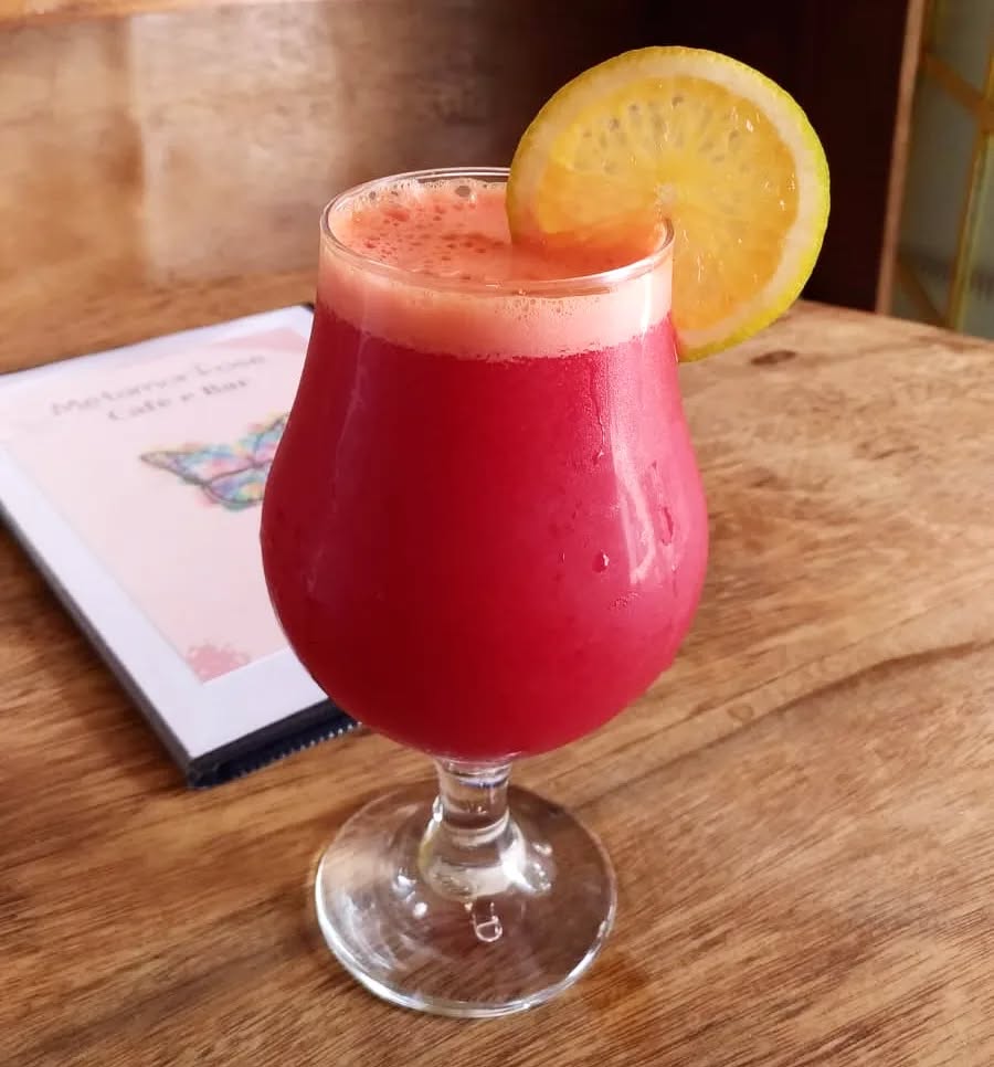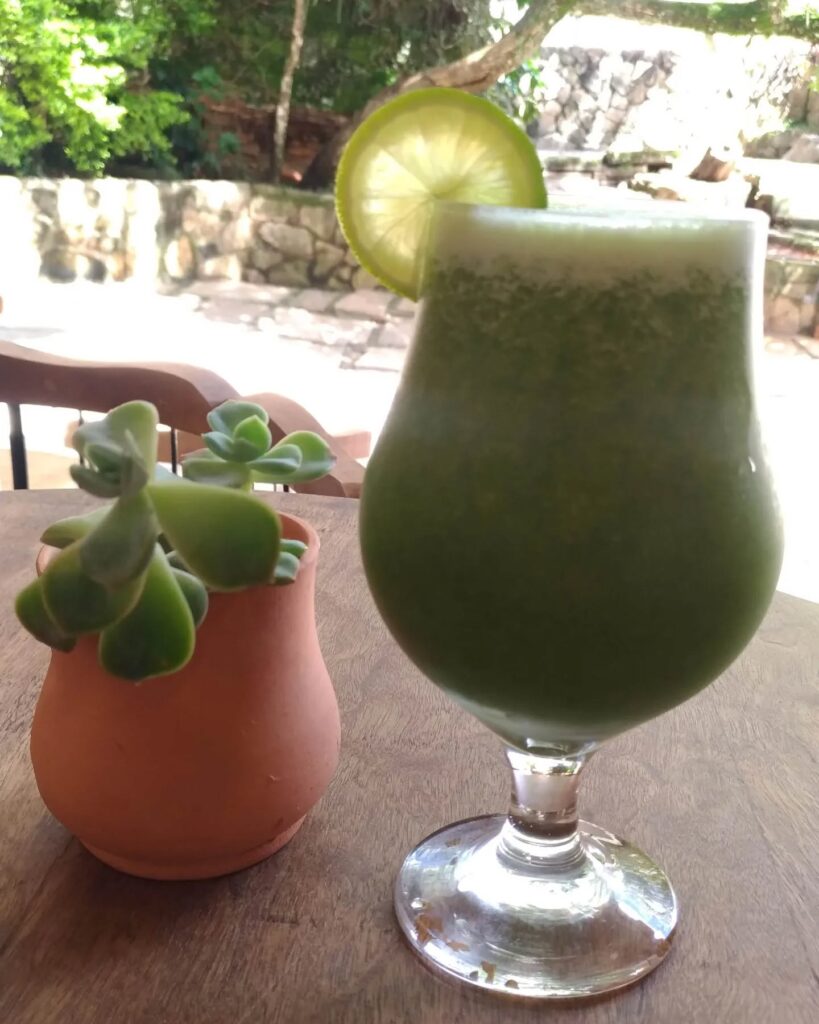 Pão de queijo recheado, sucos naturais, bolos caseiros, drinks.