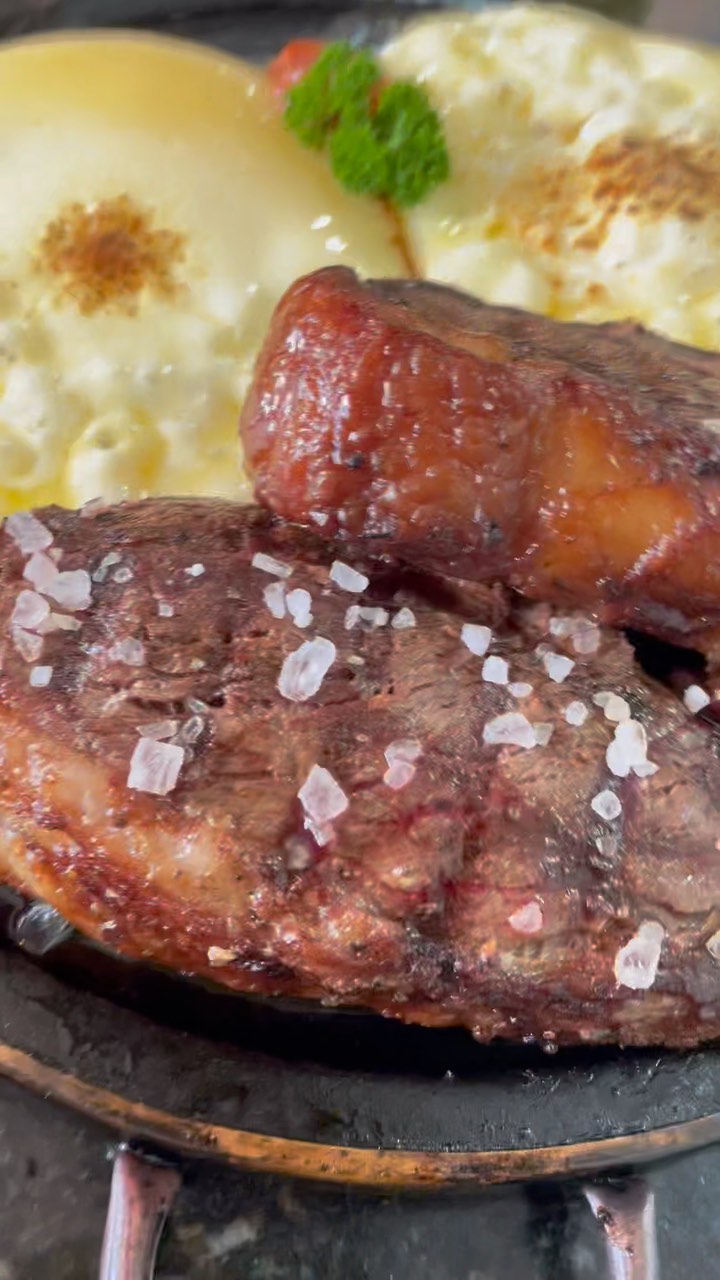 Nosso famoso contra filé acebolado com aipim, ótima opção para petiscar ou para seu almoço em família