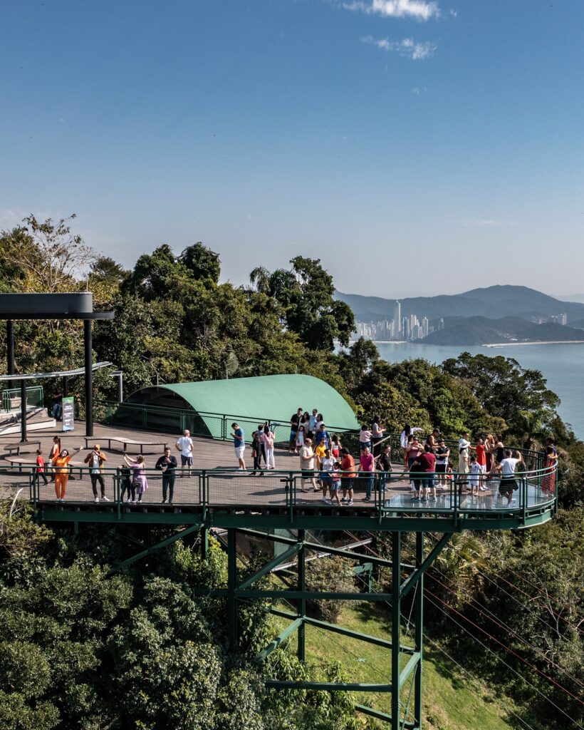 Dupla de praias conectadas – Você sai da Barra Sul, sobe até o topo do Morro da Aguada, e desce até a paradisíaca Praia de Laranjeiras. O Unipraias é o único parque no mundo que liga duas praias por teleférico.