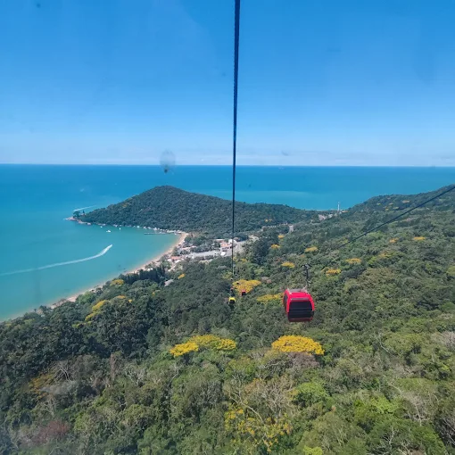 Bondinhos aéreos modernos – 47 cabines interligando três estações (Barra Sul, Mata Atlântica e Laranjeiras), proporcionando uma vista panorâmica de tirar o fôlego.