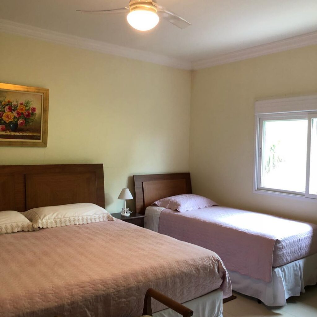 Trilhas para caminhada eccológica, playground para as crianças bricarem, quadra para esportes, salão de ginástica e salão de refeitório, com área de TV e varanda com vista para a cidade e suas montanhas.