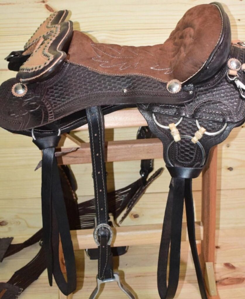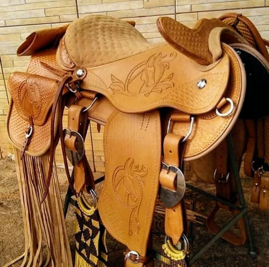 -Sela australiana profissional de pista, com excelente conforto para passeios. No couro legítimo de búfalo, ferragens em inox para melhor durabilidade do produto e barrigueira em neoprene. Com incríveis 4 anos de garantia!