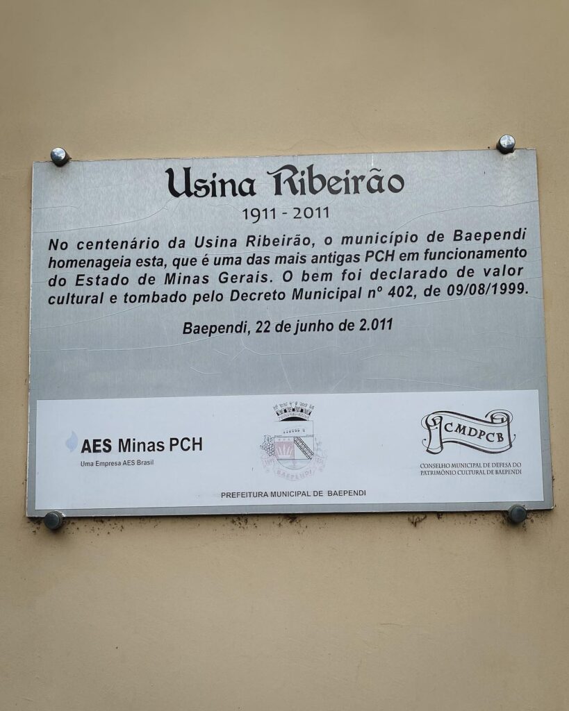 O Conjunto paisagístico da Usina do Ribeirão possui somente duas edificações. Uma delas é a casa de máquinas e todo o equipamento ali existente – turbinas, geradores e painel de controle; as duas comportas, o canal, as tubulações de ferro, e a outra é o anexo que funciona como apoio, construído seguindo os mesmas características da casa de máquinas, além da área natural e paisagística adjacente à Cachoeira do Ribeirão. A casa de máquinas foi construída em 1911 e possui estilo que lembra um chalé alemão. A estrada de acesso ao conjunto antigamente foi uma linha de trem, que foi desativada e os trilhos e dormentes foram removidos, ficando a estrada com piso de terra batida. Também conhecida como “Usina Velha”, foi a primeira usina geradora de força e luz dos municípios de Baependi e Caxambu. A Usina Ribeirão foi tombada pelo Decreto Municipal nº 402 de 09 de agosto de 1999.